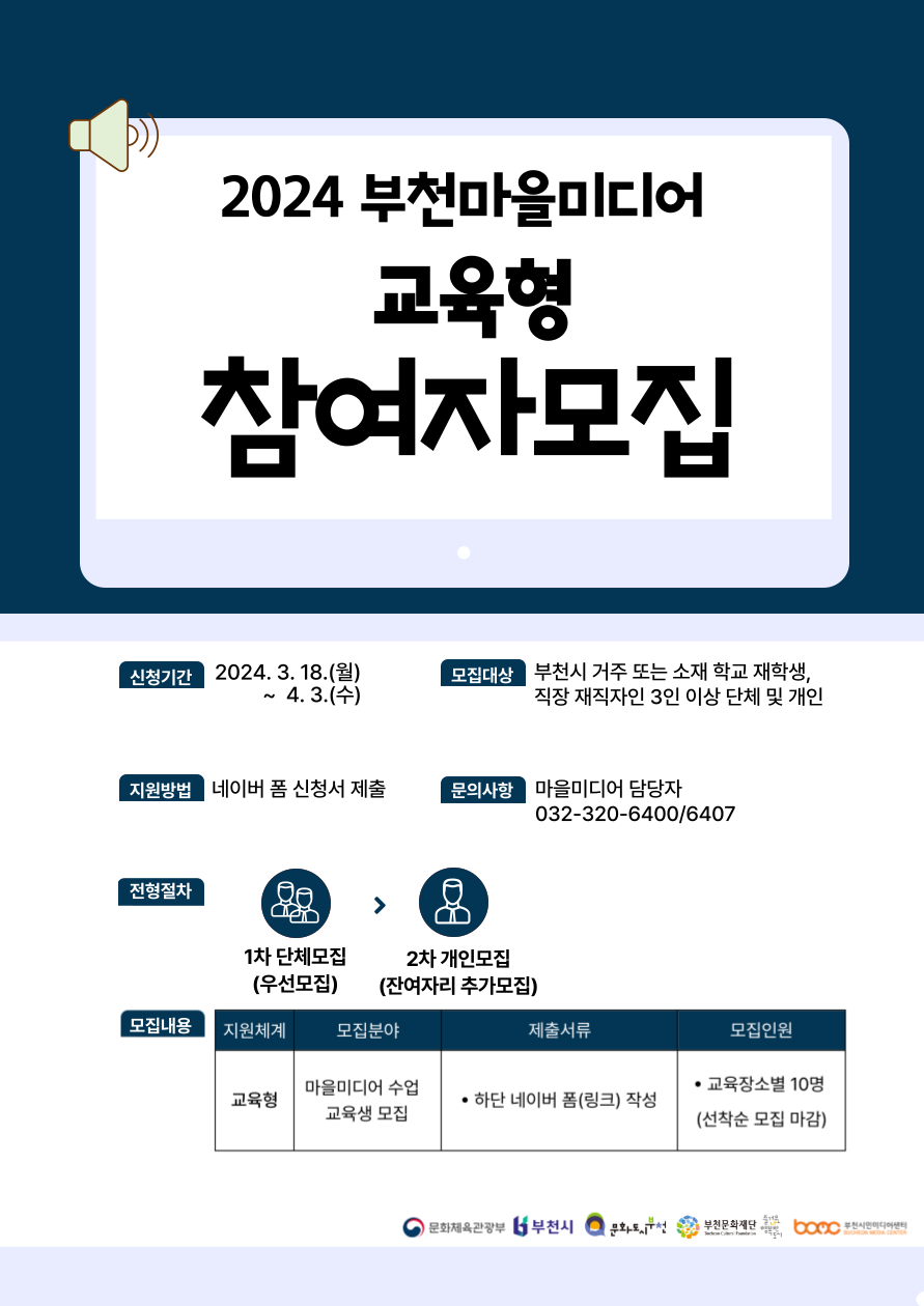1. 공 고 명 : 2024 부천마을미디어 교육형 참여자 모집