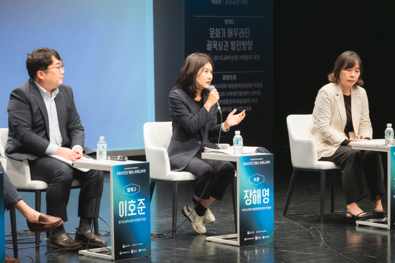 종합토론이 진행되고 있다. (좌측부터 이호준 경기도골목상점가연합회 회장, 장해영 부천시의회 재정문화위원회 위원장, 전혜선 부천시 도시재생지원센터 센터장)