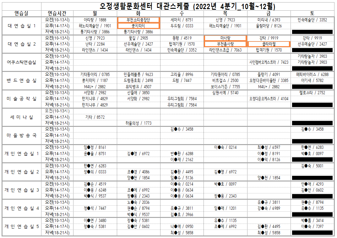 오정생활문화센터 모든 공간 사용이 불가합니다.