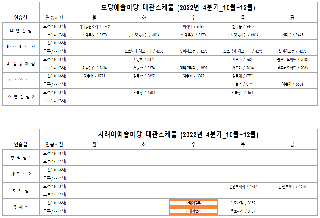 4. 정기대관 확정되신 동아리 및 개인은 4분기 정기대관 신청서를 작성 후