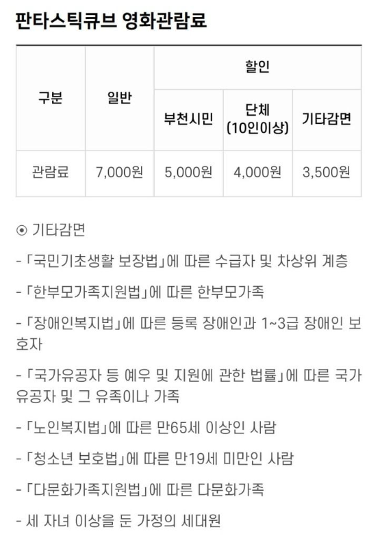 8/30일 오후부터 판타스틱큐브는 기존 관람료로 예매 및 발권을 운영하는 점 참고 부탁드립니다.