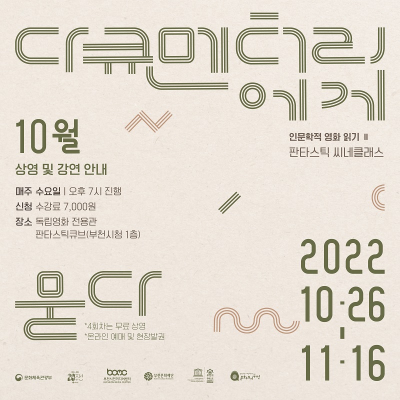 안녕하세요. 부천판타스틱큐브에서 영화도 보고 강연도 들을 수 있는 판타스틱 씨네클래스를 준비했습니다.