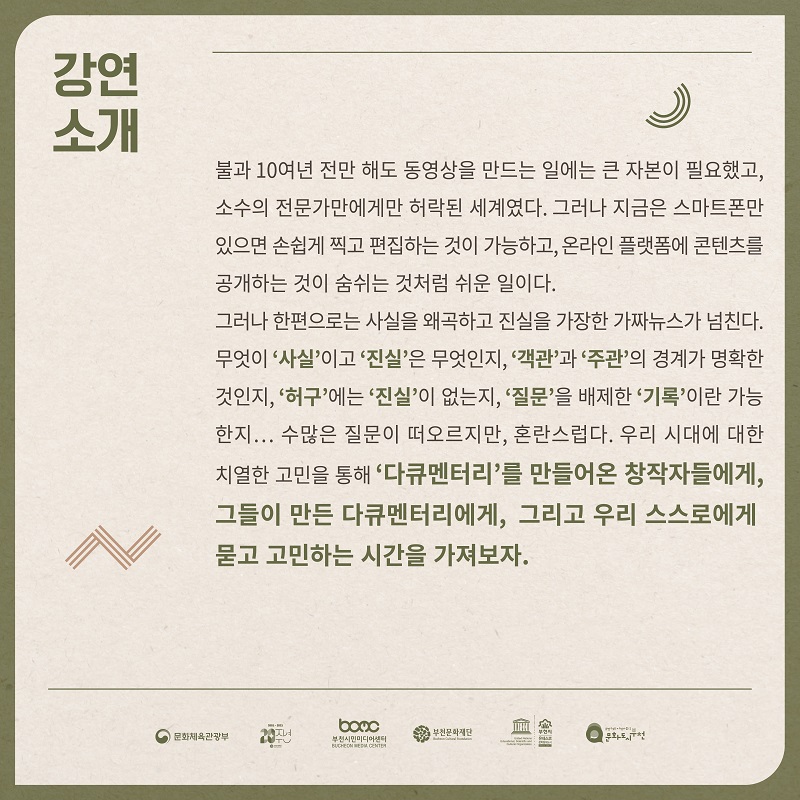 <판타스틱 씨네클래스 - '잇다'> 인문학적 영화읽기Ⅱ 다큐멘터리에게 묻다 영화 관람 및 강연 안내