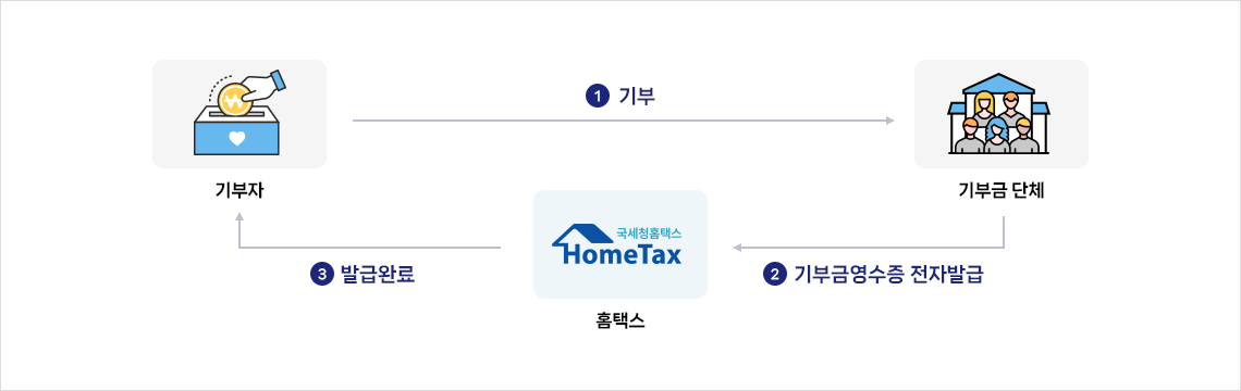 2021년 7월 1일부터 국세청 홈택스를 통해 전자기부금영수증을 발급 받을 수 있으며, 소득(법인)세 등 적격증빙으로 유효합니다. (2021.1.1 이후 분에 한함)