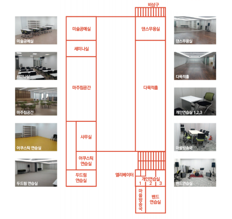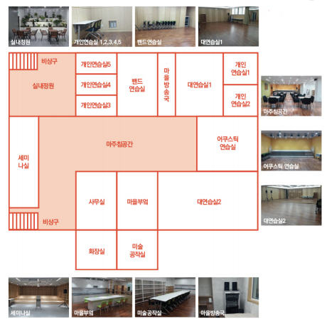 ▶ 오정생활문화센터 : 대연습실1 / 대연습실2 / 어쿠스틱연습실 / 밴드연습실 / 미술공직실 / 세미나실