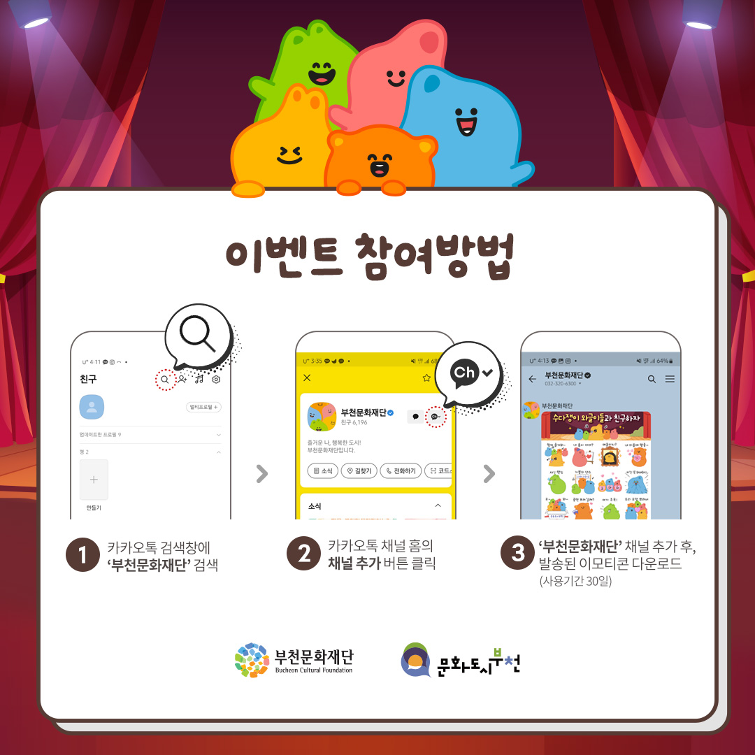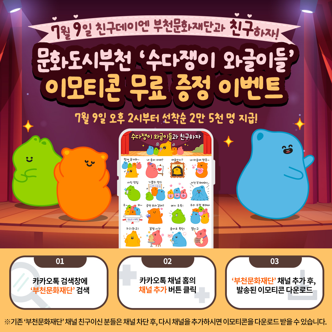 부천문화재단이 '수다쟁이 와글이들' 이모티콘 무료 증정 이벤트를 진행합니다!