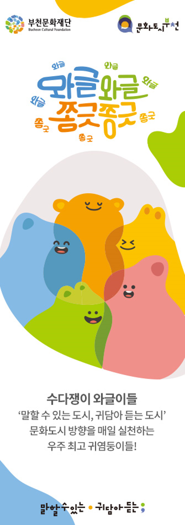 문화도시부천의 슬로건인 '말할 수 있는 도시, 귀담아듣는 도시'를 형상화한 캐릭터로