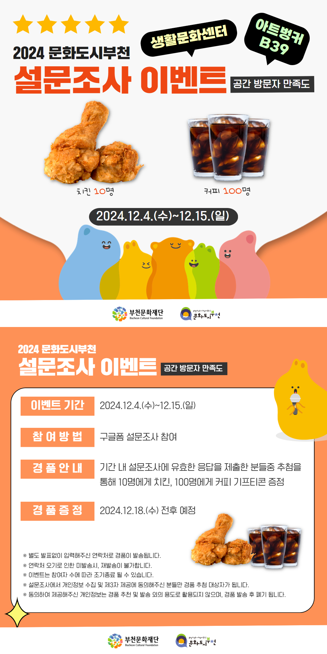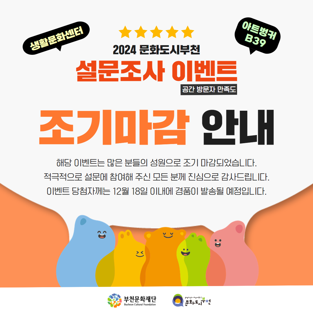 아트벙커B39와 생활문화지원센터(오정, 소사, 도당, 사래이)에 대한 방문자 만족도 설문조사를 진행합니다 :)