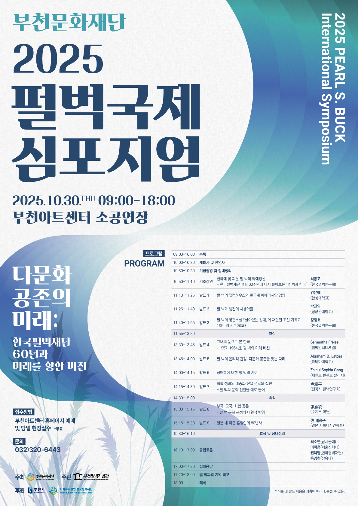 2025 펄벅국제심포지엄이 10월 30일(목), 부천아트센터 소공연장에서 열립니다.