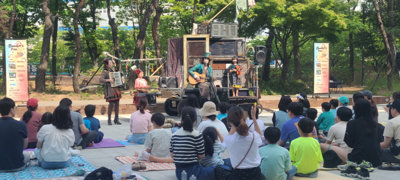 4일(토) 오후 3시에는 아티스트 ‘음악당 달다’의 ▲랄랄라 패밀리쇼가 B39 야외 시민광장에서 펼쳐졌다. 화창한 날씨와 함께 야외에서 진행한 공연은 ‘음악당 달다’만의 특별한 수레에서 다양한 악기와 신기한 연주를 펼치며 많은 호응을 얻었다.