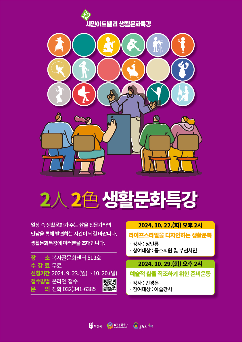 부천문화재단, 2人2色 생활문화특강 참여자 모집