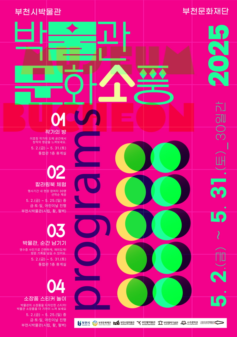 박종민 부천시박물관장은 “어린이를 동반한 가족 단위 관람객 모두에게 의미 있고 행복한 시간이 되길 바란다”고 밝혔다.