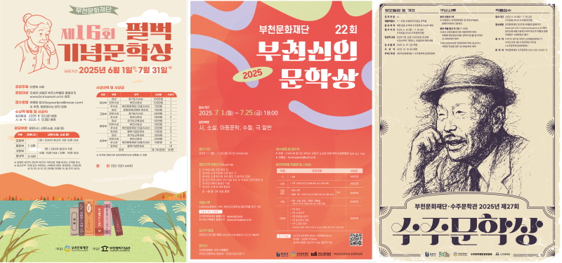 ▲(좌측부터) <제16회 펄벅기념문학상>, <제22회 부천신인문학상>, <제27회 수주문학상> 공모 포스터
